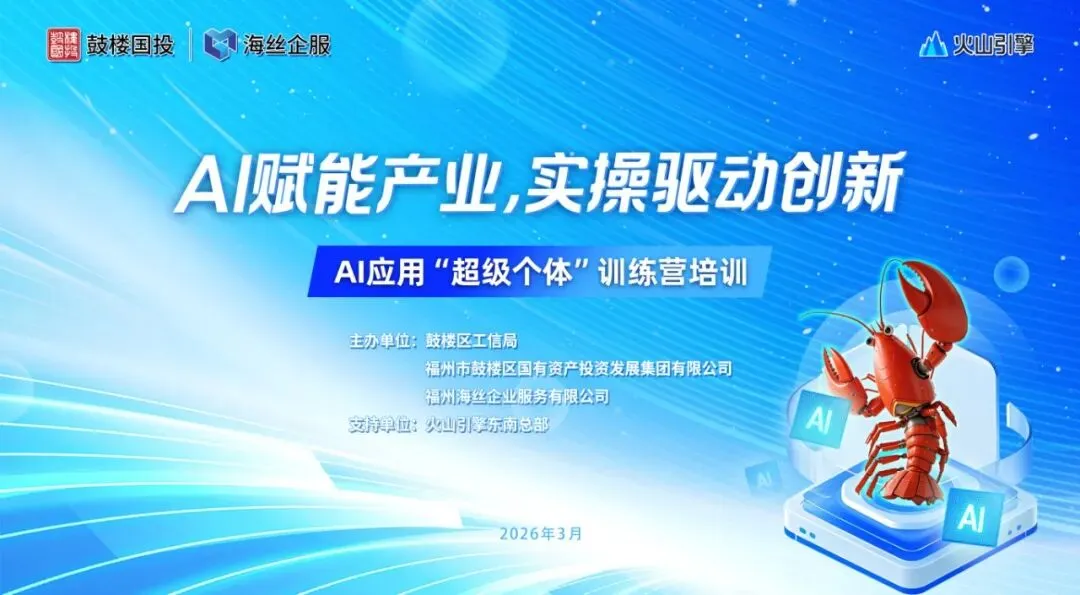 3月17日下午,由鼓楼区工信局、鼓楼区国投集团、福州海丝企业服务有限公司主办,火山引擎东南总部鼎力支持的AI应用“超级个体”训练营在海洋经济科创高地成功举办。园区内企业技术骨干、产品经理、开发者及国投集团业务精英近180人齐聚一堂,共同探索OpenClaw技术落地应用之道,以AI实操赋能产业升级,为鼓楼区数字经济高质量发展注入新动能。