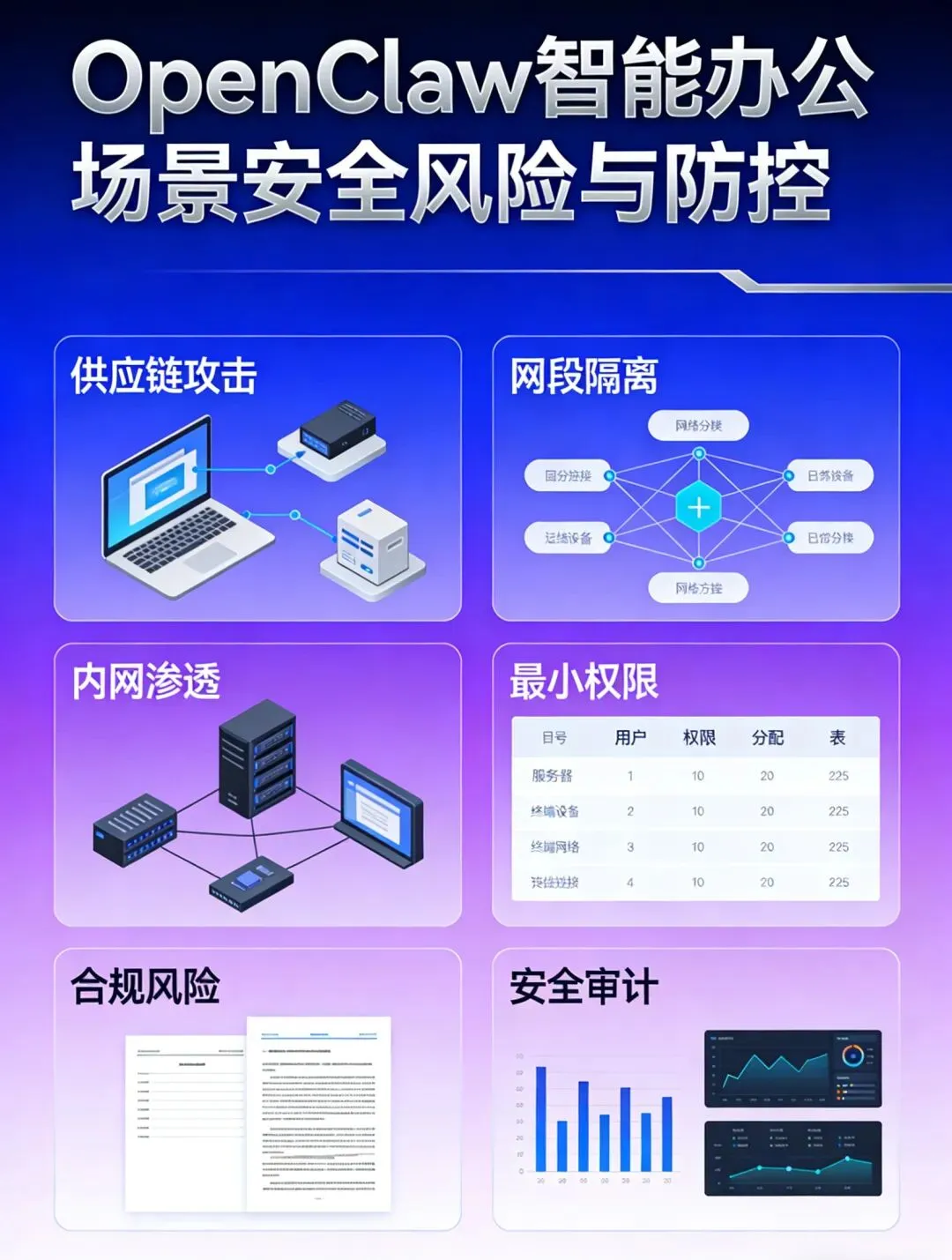 1. 严格准入审批管理:原则上禁止在涉密网络、关键生产系统、核心业务系统中部署使用OpenClaw等开源智能体;确需在非涉密办公网使用的,必须经过单位保密部门、安全部门的联合安全评估与严格审批,明确限定使用场景、功能范围与权限边界,严禁超范围、超权限使用。