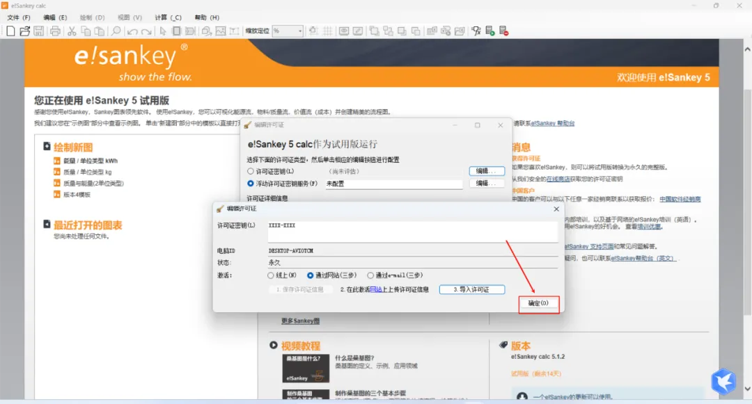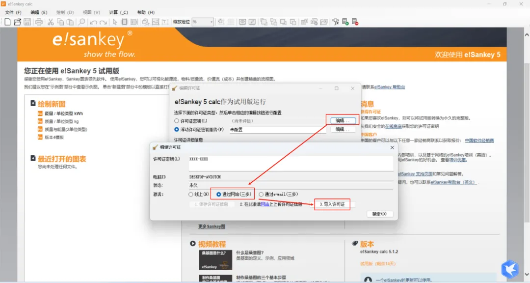 14.点击“编辑”,选择“通过网站三步”,点击“导入许可证”
