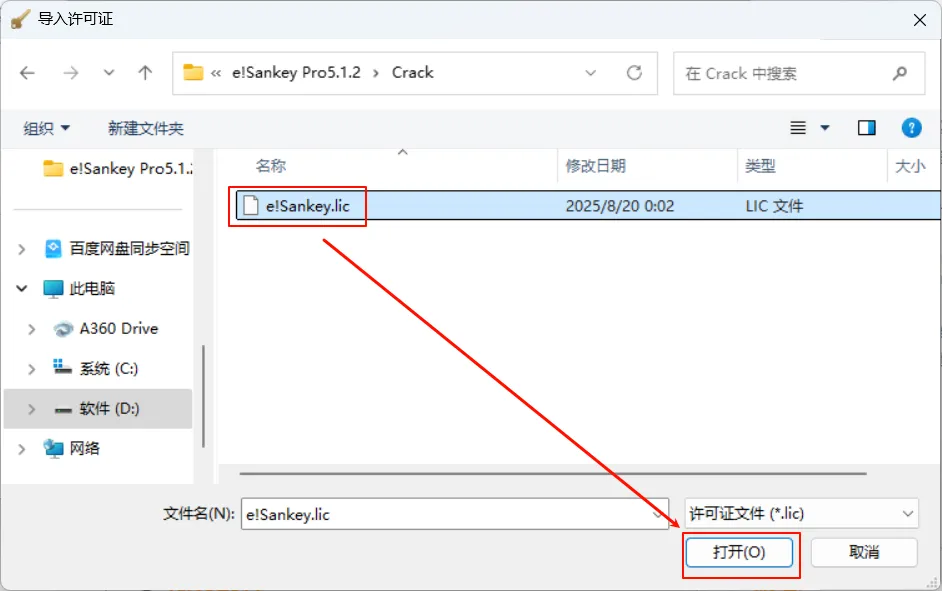 15.浏览并选中准备好的“eSankey.lic”文件,点击“打开”