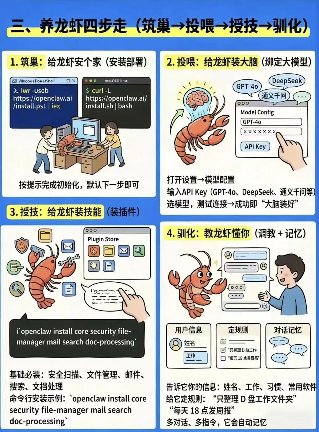 这只OpenClaw小龙虾,越养越顺手!从新手小白到进阶玩家,都能轻松拿捏,快给自己安排一只专属的AI伙伴吧~ 🚀