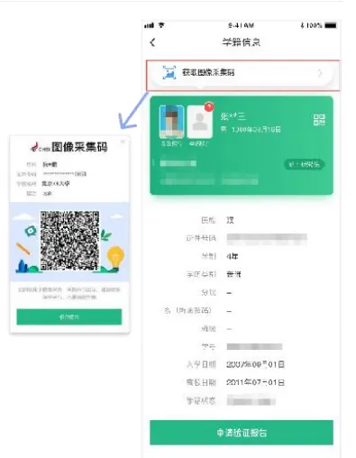 7. 使用【毕业证照】小程序扫描图像采集码即可开始采集。