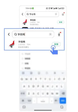 安卓手机在应用商店搜索"学信网 APP"进行安装;IOS 手机在 APPStore 搜索"学信网 APP"进行安装;