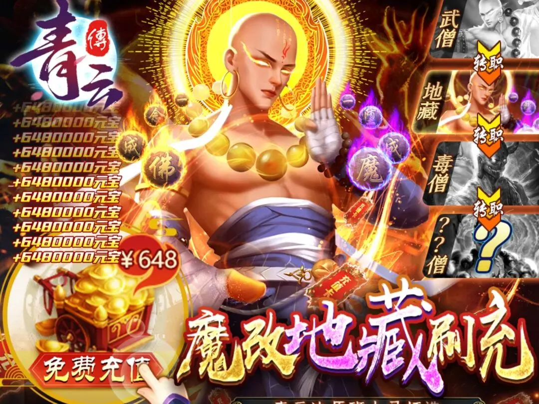 青云传(魔改地藏刷充)1.充值比例1:10000元宝,上线送GM充值工具,每日免费充值7.上线送GM专属时装