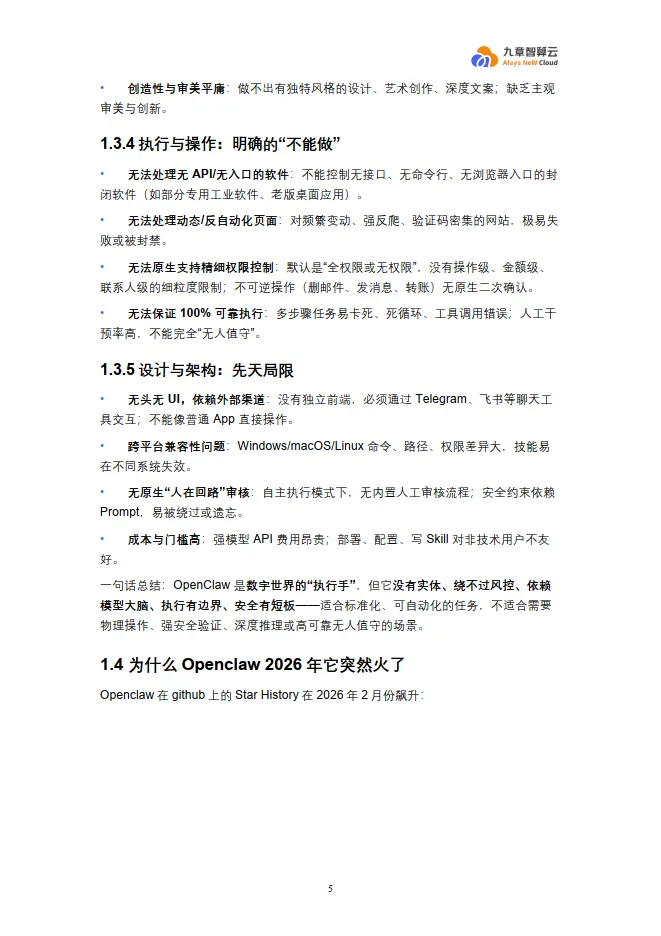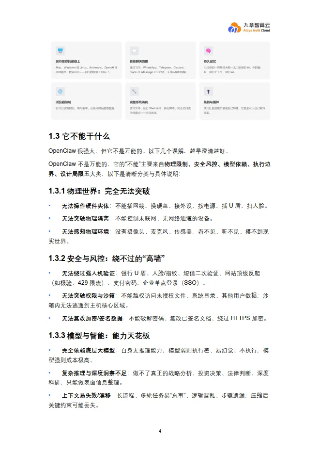 文档明确指出了OpenClaw的五大类“不能”: