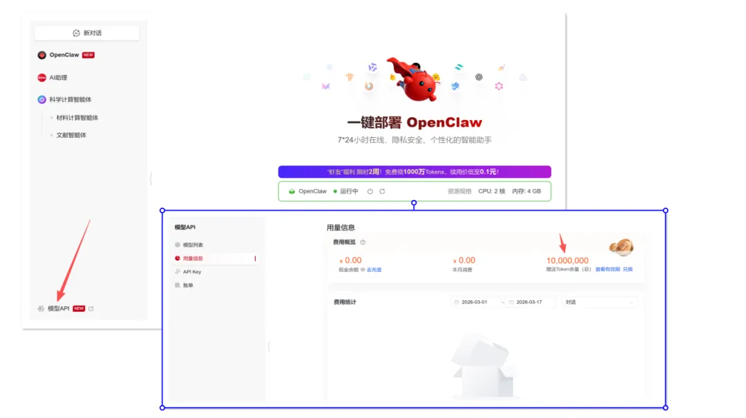 今天我又发现了一个可以一键部署OpenClaw的平台,而且它还直接赠送了3000W的Tokens,这个量足够普通人干好多事情了。