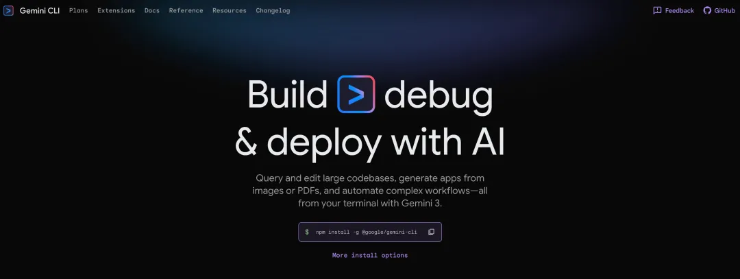 Gemini CLI 细颗粒度安装指南(0 基础,免费)Gemini CLI 是 google 的一款命令行工具,可以帮你修改文件、改代码、执行操作。是根植于终端命令行里面的 agent 助手。只要你有谷歌账号,就可以免费使用它,gemini cli 每天都有不少的免费额度,用不完。智能还不错。可以作为 ai 入门的必装软件。安装 gemini cli 非常简单:登录这个网址:https://geminicli.com/然后复制其中的命令:npm install -g @google/gemini-cli然后复制到终端执行即可。很多人不知道终端是什么,也不知道怎么打开终端,终端其实就是一个窗口,能够直接输入命令给计算机。mac 打开终端的方法如下:同时按住 “command+空格”,然后输入“终端”或者“terminal”,然后回车。然后就能打开终端了。windows 系统我忘了,请自行百度。在终端里面复制命令npm install -g @google/gemini-cli然后回车。gemini cli 就装好了。如何启动它?打开终端,在终端里面输入:gemini然后回车。然后就会弹出让你绑定 google 账号的网页,登录,绑定,即可。然后你就可以正式使用 gemini cli 了。快去试试吧。全部免费哦。快去和他说话吧: