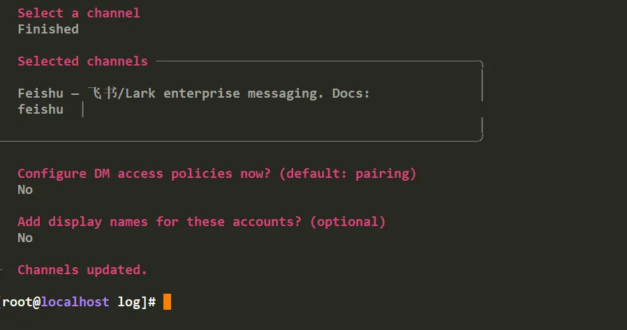 4. 配置openclaw飞书通道