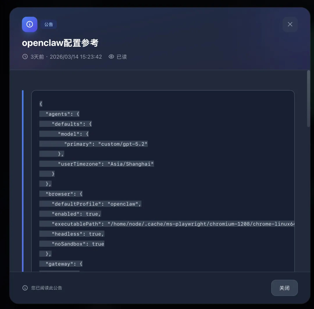 { "agents": { "defaults": { "model": { "primary": "free-gpt/gpt-5.2" } } }}2.1 这里最容易踩的 4 个坑