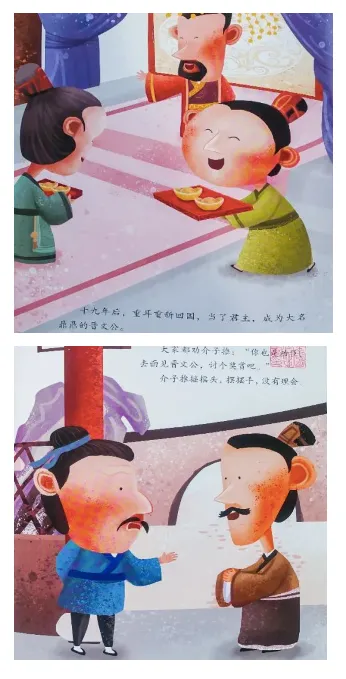 跟随重耳的臣子们急坏了。然而,那里前不着村,后不着店,根本找不到吃的。情急之下,臣子介子推走到一个僻静的地方,忍痛从自己的腿上割下了一块肉。介子推煮了一碗肉汤,让重耳喝下。 渐渐地,重耳醒了过来。当他得知是介子推割肉相救时,感动得落下了眼泪。