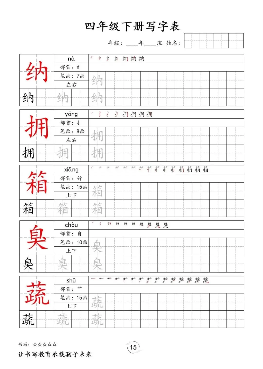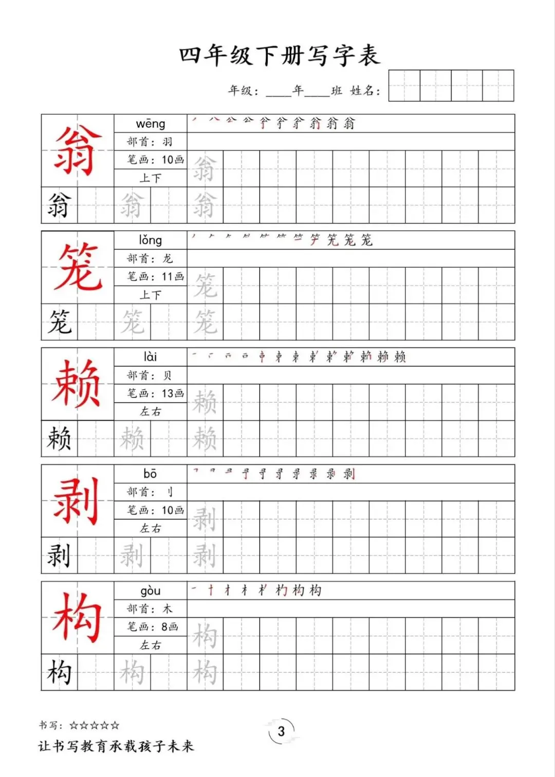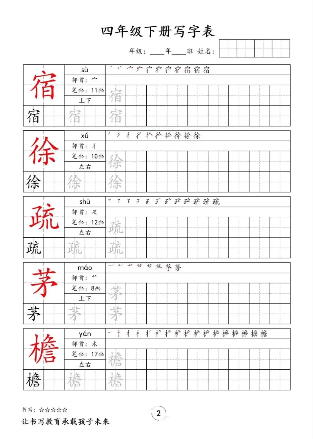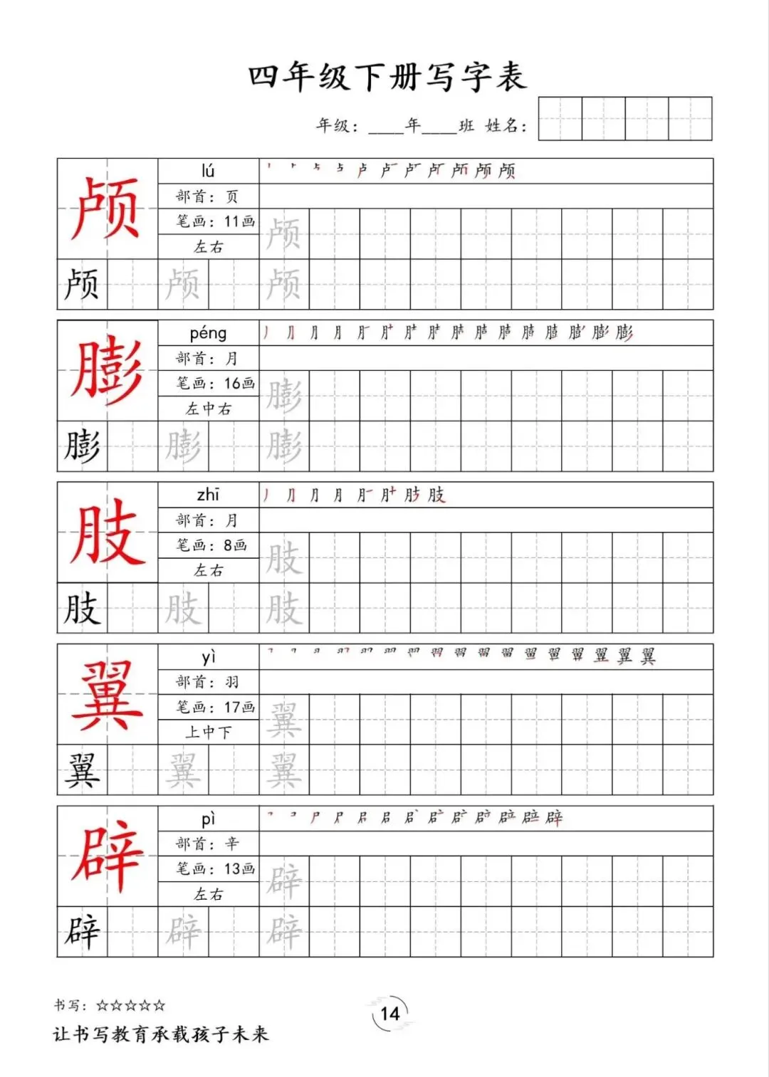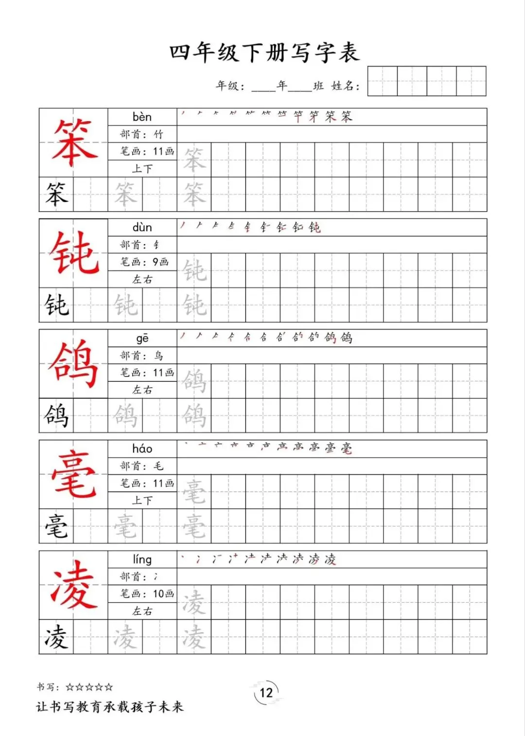 该字帖要求会读、会写、会组词,能掌握正确的笔顺和间架结构,能在田字格中规范书写。孩子可以临摹一遍,再书写一遍,电子字帖可以反复练习,多写几遍,孩子自然而然就记住了。