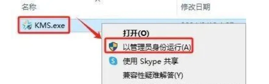 7.选择【KMS.exe】右键点击【以管理员身份运行】。