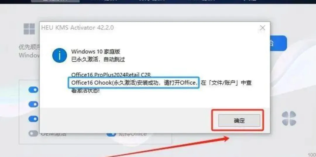10.显示激活成功后点击【确定】。激活完成,关闭激活工具。
