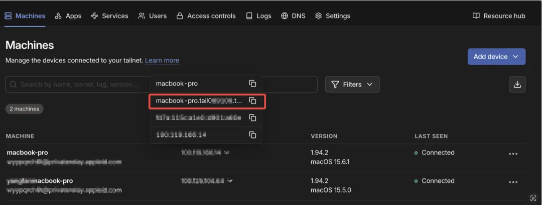 已登录 Tailscale 账号(支持 Google/Microsoft/GitHub/Apple ID)