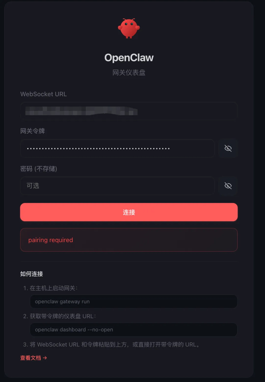 http://127.0.0.1:18789输入配置的 token 登录