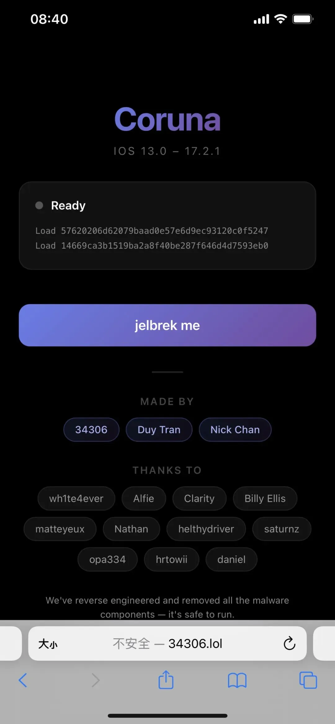 插件下载地址https://pan.pgjsz.cn/vx_tele4g/Jailbreak/Coruna