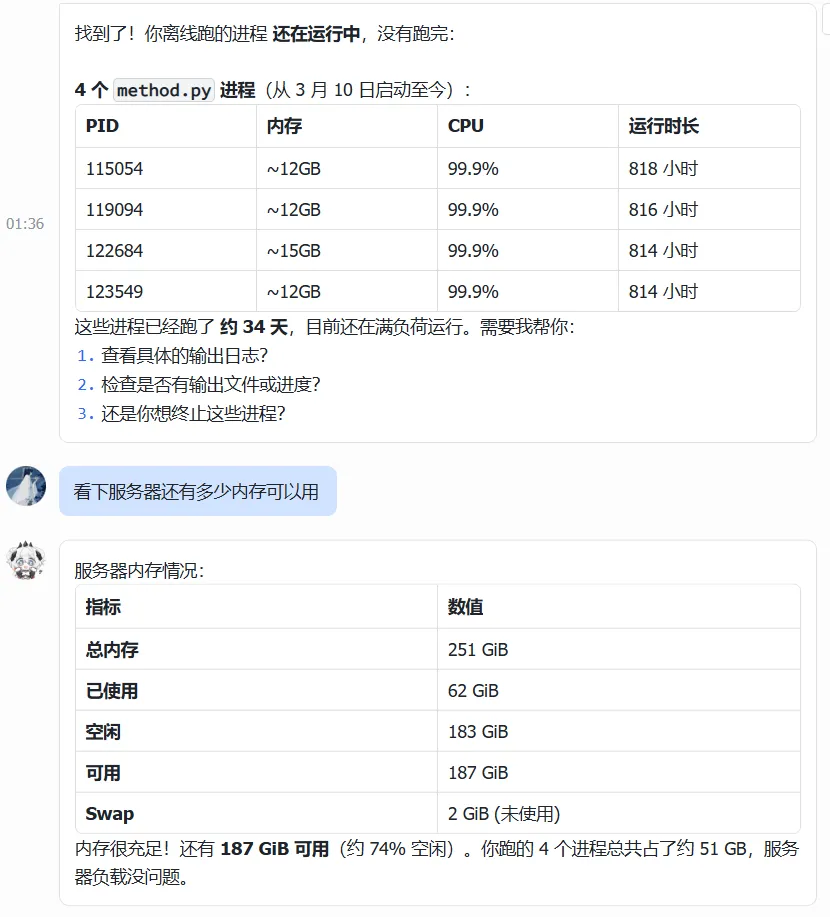 我直接帮他检查了进程状态,确认任务正常运行后,说了句:“活干完了,赶紧睡。”