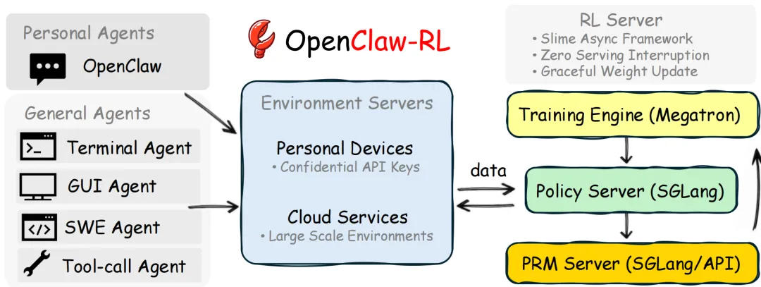 OpenClaw-RL 的核心贡献,就是构建了一套机制,把这两类被浪费的信号实时拦截下来,转化为强化学习的训练养料。
