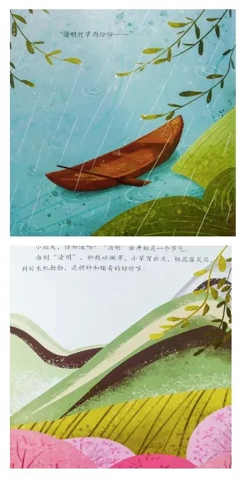 “清明时节雨纷纷……”。小朋友,你知道吗?“清明”最开始是一个节气。 每到“清明”,柳枝吐嫩芽,小草冒出头,桃花露笑容,到处生机勃勃,是耕种和踏青的好时节。