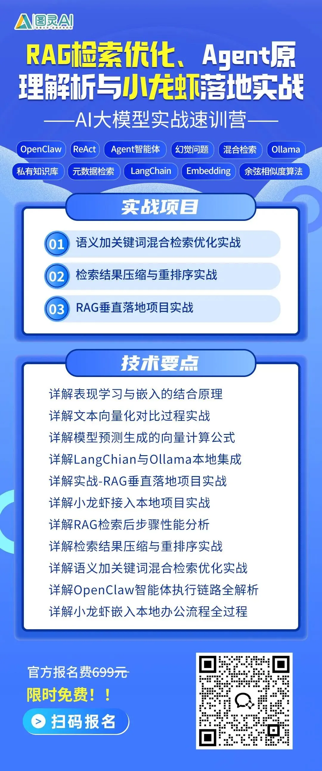 OpenClaw搞大动作了,大家不要轻易离职..最近OpenClaw彻底刷屏技术圈,从写代码、查bug到自动执行任务,大家都在尝鲜。当AI真的能自动处理重复开发任务时,传统程序员正在被快速取代。过去两年初级程序员岗位暴跌27.5%,近九成基础编码工作已被AI接管,传统开发岗需求腰斩,薪资同比下滑8%-15%。而另一边,AI相关岗位却在疯抢人才,2026年春招AI岗位量暴涨12倍,平均月薪超6万,薪资溢价超40%,人才供需比仅0.15,7个岗位抢1个人。很多人还在观望,别等被裁才醒悟,现在不学AI,未来连被替代的资格都没有。这节AI 大模型实战课,覆盖大模型原理、RAG落地、小龙虾嵌入本地办公流程,全是企业刚需技能,想系统学习AI的朋友可以来听一听。现在报名,还能免费领取龙虾Open Clawa超详细安装教程此次实战训练,是专为AI大模型而设计的,课程由顶尖名师的专业指导与规划,本次课程并不仅限于技术干货传授,更有技术大佬十余年积累的技术变现经验分享。