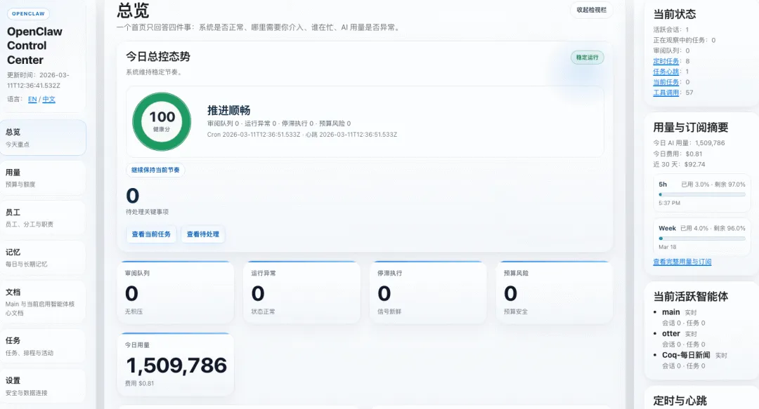 如果不去翻那让人头大的原始日志,几乎无法感知系统的真实脉搏。这对非技术出身的伙伴来说,简直是一道无法逾越的高墙。别担心,针对这些痛点,我们的主角登场了——OpenClaw Control Center。