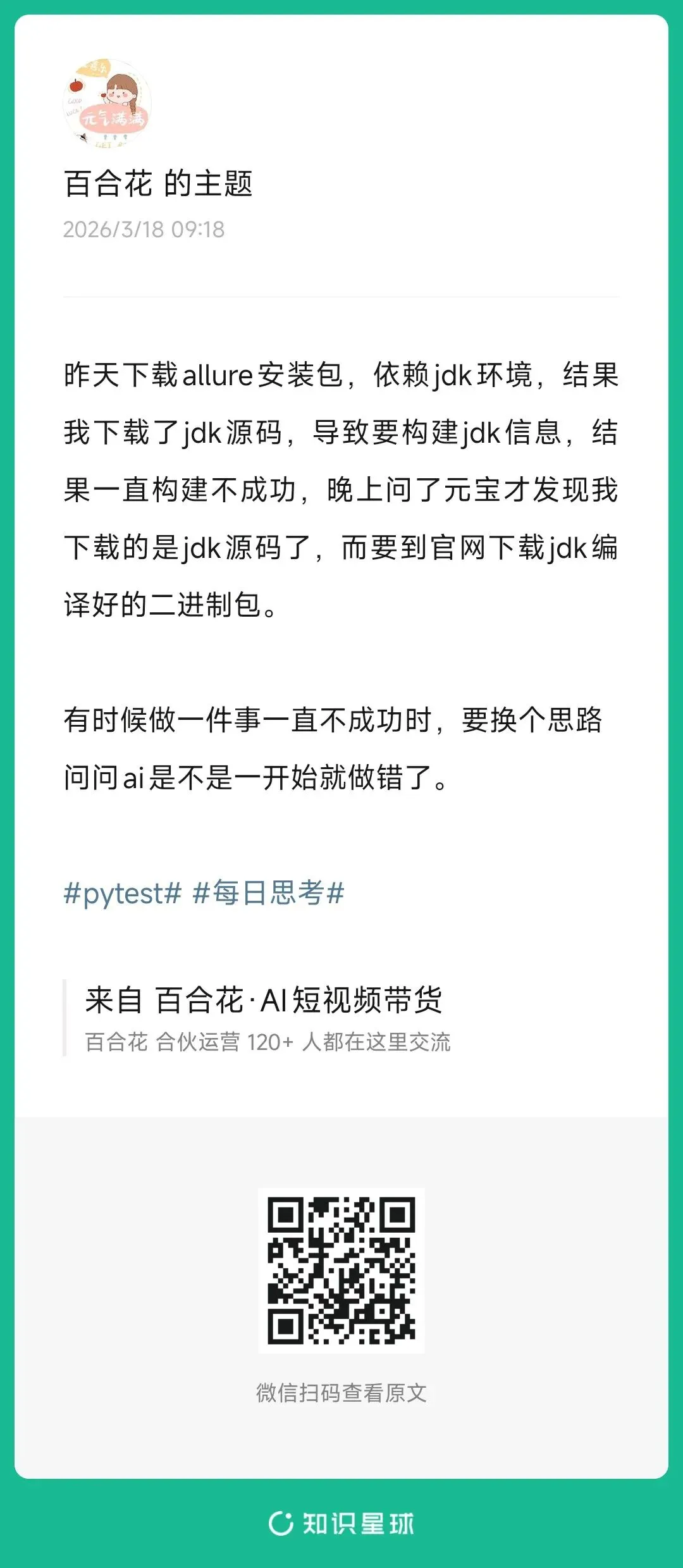 昨天下载allure安装包,依赖jdk环境,结果我下载了jdk源码,导致要构建jdk信息,结果一直构建不成功,晚上问了元宝才发现我下载的是jdk源码了,而要到官网下载jdk编译好的二进制包。