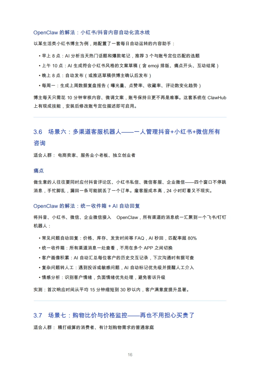 中小企业主 | 多平台运营分散 | 统一客服、价格监控、CRM集成 | 独立电商客服响应时间缩短90% |
