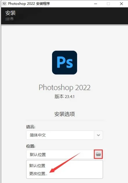 3.如需修改安装路径,点击【文件夹图标】,选择更改位置。