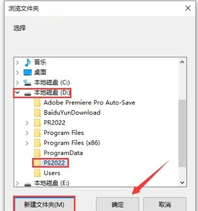 4.选择需要安装的磁盘,本例安装到D盘,点击【新建文件夹】并命名,点击确定。
