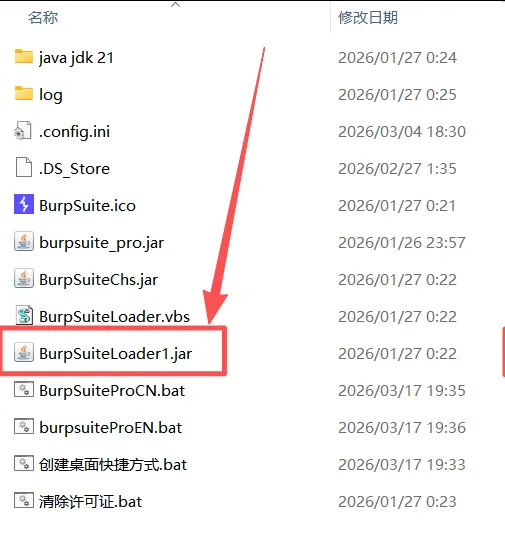 列表项在文件中找到BurpsuiteLoader1.jar这个文件双击打开