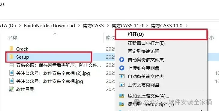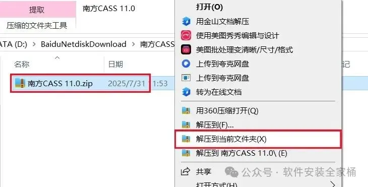 1、下载南方CASS 11.0软件安装包到电脑上,右键选择【解压到当前文件夹】