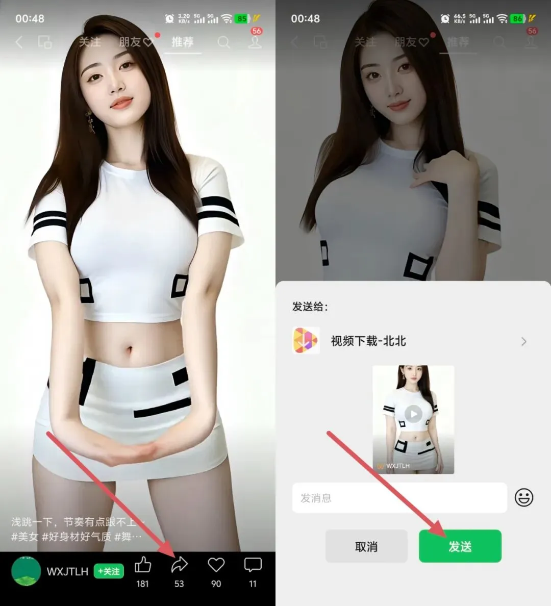 ② ➡️ 选择【转发给朋友】,将视频发送给「视频下载机器人」。