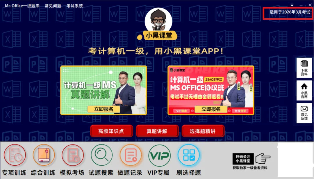 2026年3月全国计算机等级考试将于3月28-30日举行!小为精心整理了最新版(备考2026年3月)的小黑课堂计算机一级MS office题库软件安装教程,助你顺利通过二级考试!