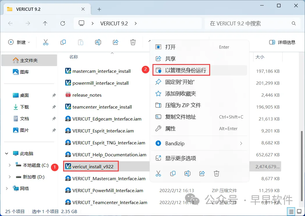 3、找到【vericut_install_v922】应用程序,右键选择【以管理员身份运行】它