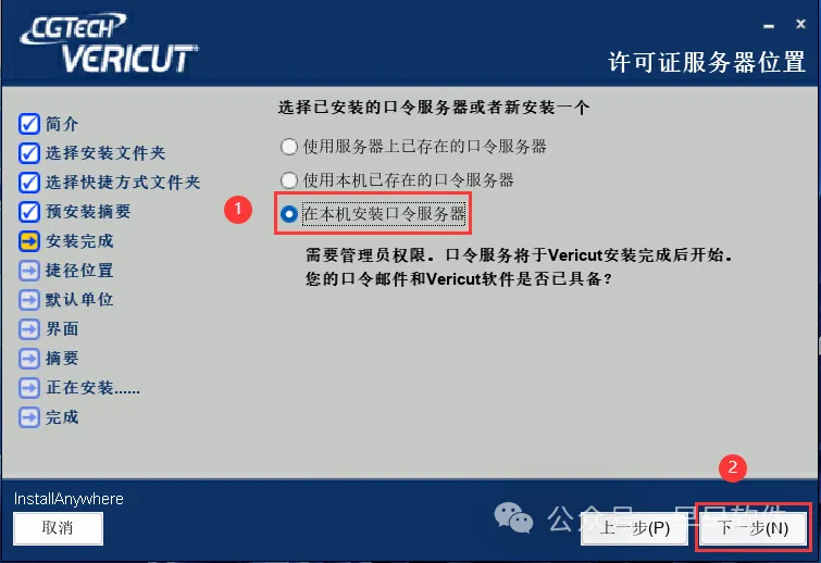 8、勾选【在本机安装口令服务器】,再点击【下一步】