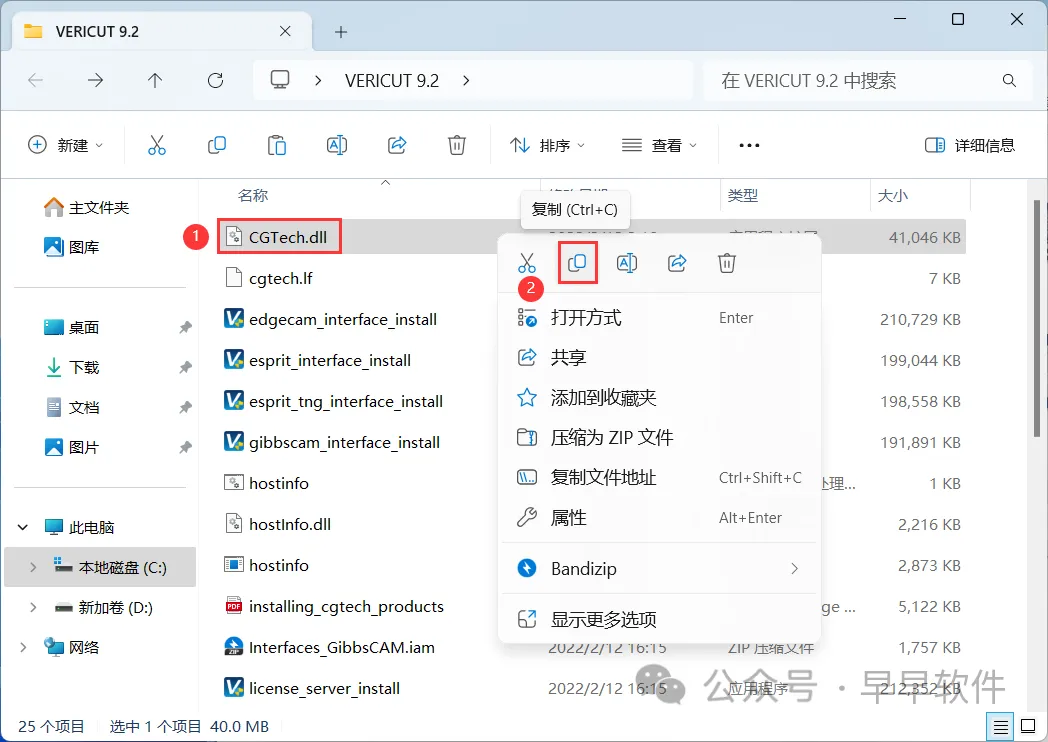 32、回到VERICUT 9.2文件夹,找到【CGTech.dll】文件,再右键点击【复制按钮】