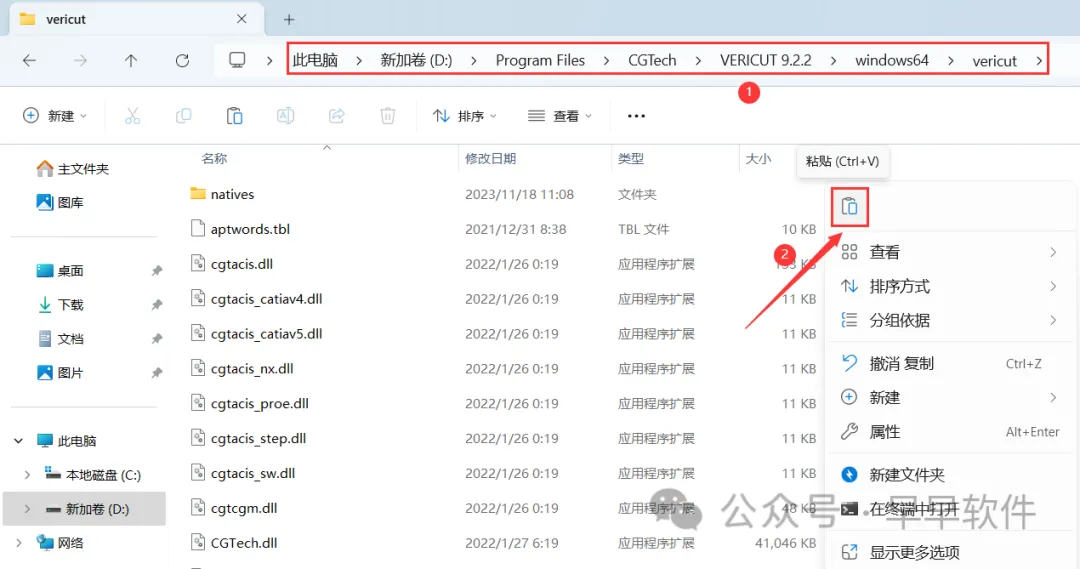 33、打开路径:D:\Program Files\CGTech\ VERICUT 9.2\windows64\vericut,再右键文件夹的空白处,点击【粘贴按钮】