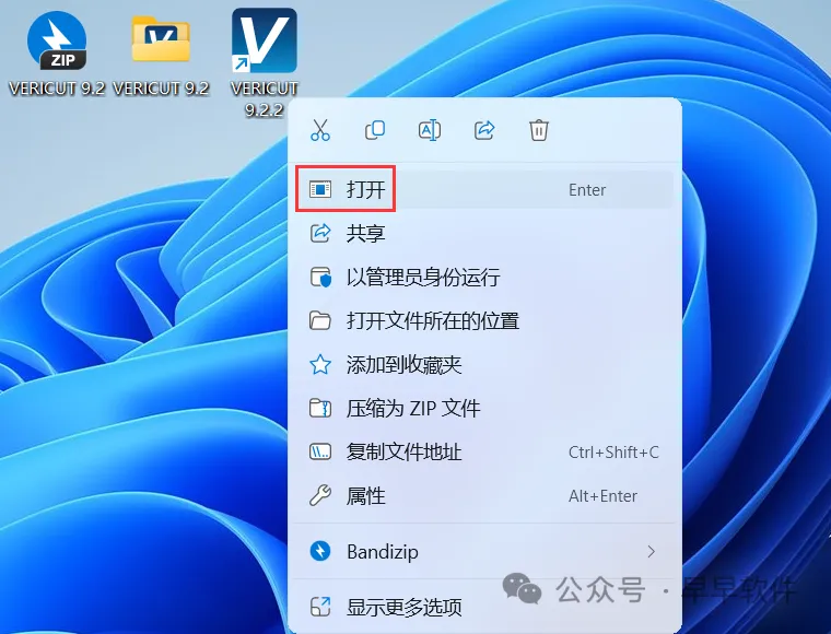 40、回到桌面,右键桌面上的【VERICUT 9.2软件图标】,点击【打开】