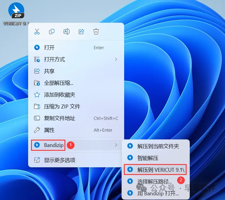 1、下载VERICUT 9.1软件安装包到电脑上,右键选择【解压到VERICUT 9.1\】