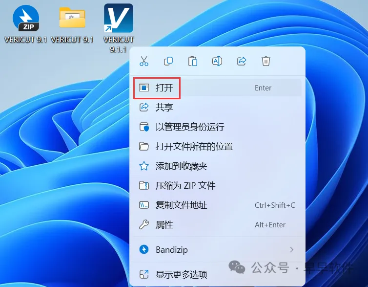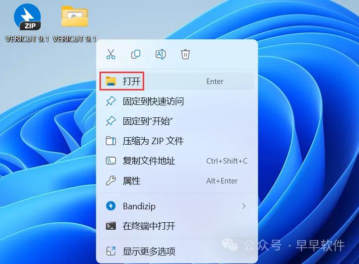 38、回到桌面,右键桌面上的【VERICUT 9.1软件图标】,点击【打开】
