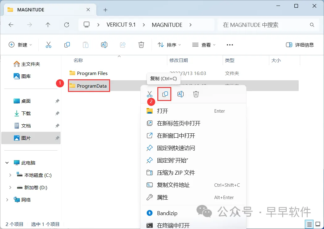 30、找到【ProgramData】文件夹,再右键点击【复制按钮】