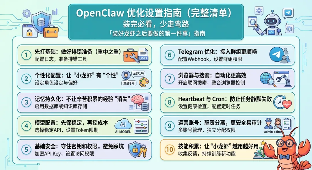 收藏这篇指南,下次装完OpenClaw,直接对照操作,让“小龙虾”稳稳跑起来~