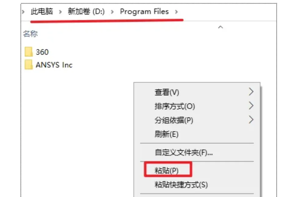 58.依次打开ANSYS安装路径:\Program Files,粘贴复制的文件夹到该路径下