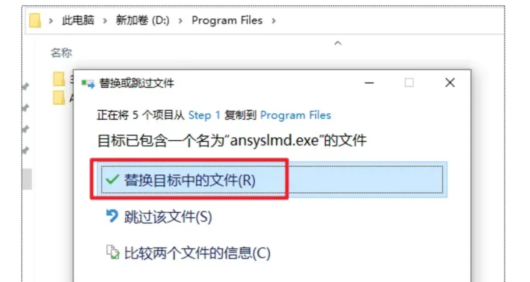 14.选择“替换目标中的文件“