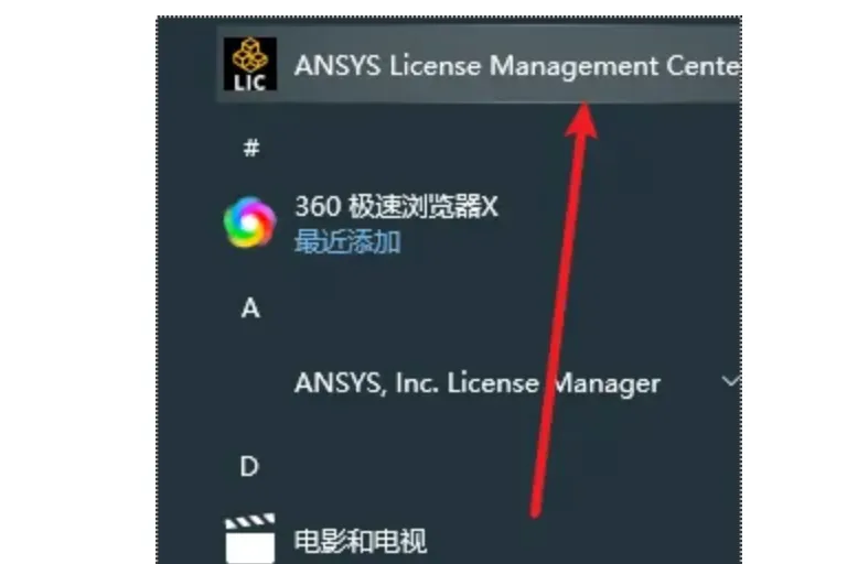 15.在开始菜单中找到证书管理中心“ANSYS License Manager Center“,点击打开