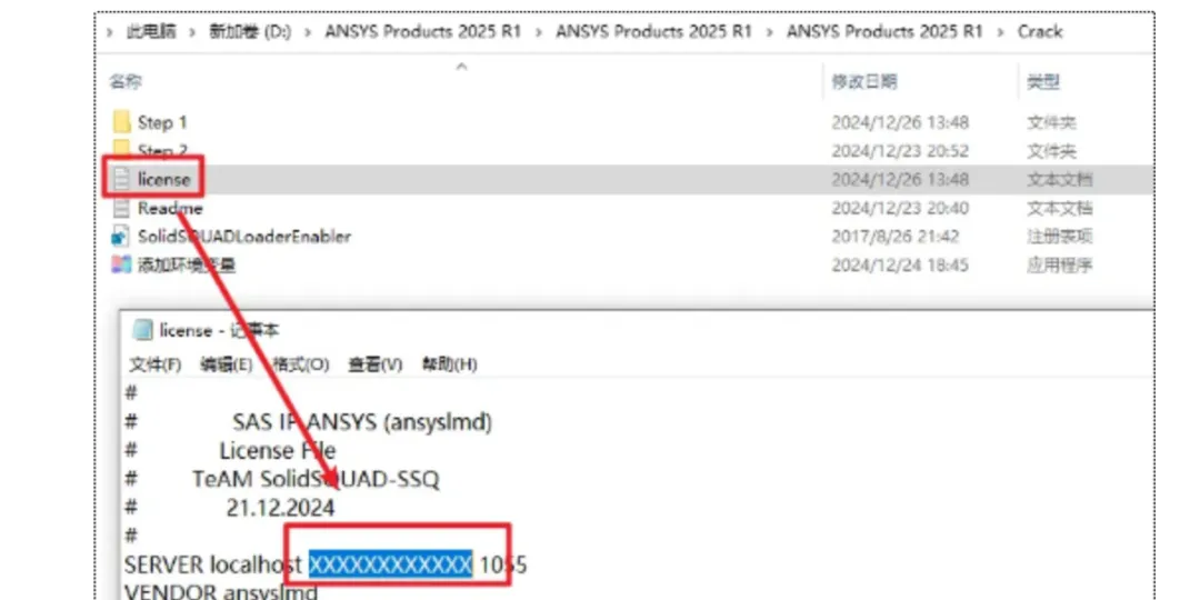 17.返回安装文件夹,双击打开“Crack”文件夹,打开“license.txt”文本文件,在文本中找到“XXXXXXXXXXXX”