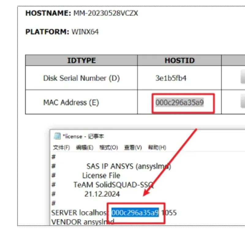 18.将打开的文本中“XXXXXXXXXXXX”替换HOSTID下的文字(前后都有空格,注意不要删除了)