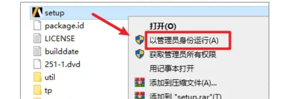 3.在打开的文件夹中,找到并选中“setup”右键选择“以管理员身份运行”
