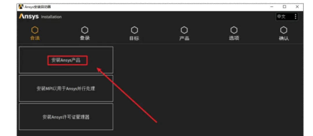 25.点击“安装ANSYS产品”