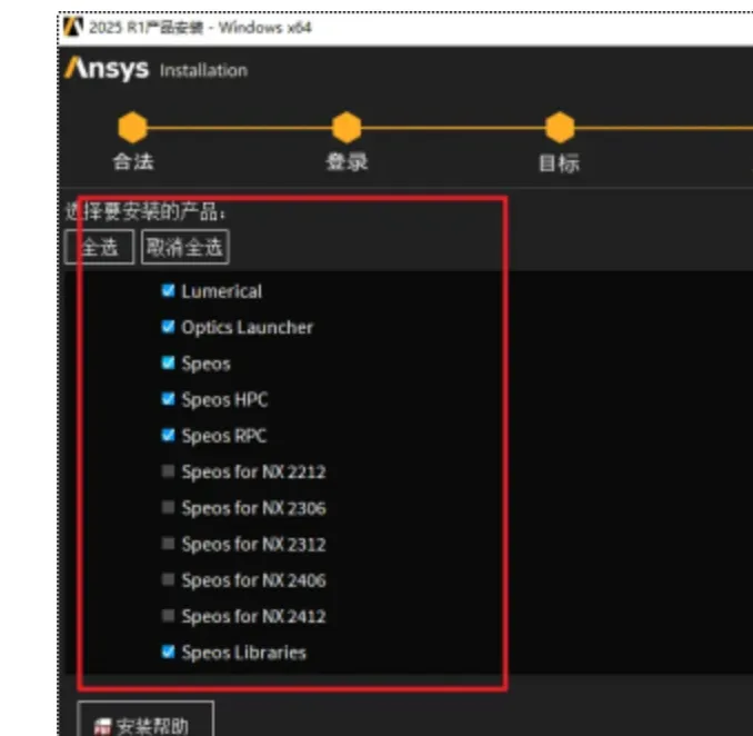 28.选择需要安装的产品,软件默认勾选Electronics、Lumerical、Zemax三个组件,可以根据自己的需要选择,点击“下一步”
